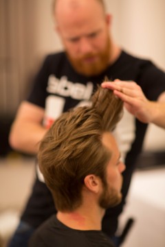 “I wanted the hair to reflect a true Savile Row gentleman so I didn’t overload the hair with too much product. It’s all about creating a soft look with natural volume for a relaxed summer vibe
