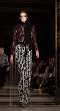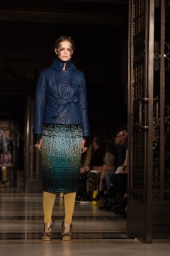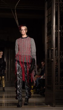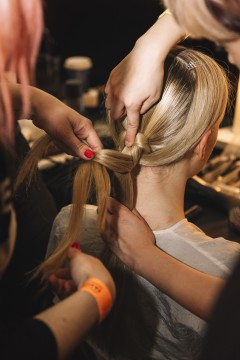Run your hands through front section using label.m Texturising Volume Spray and cross over the hair under the ponytail and create a knot that sits on top.