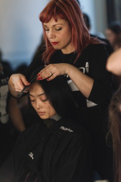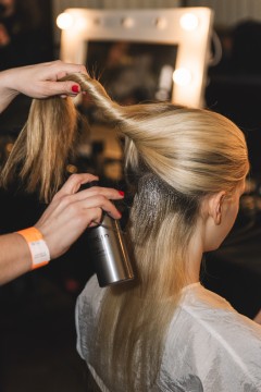 Apply label.m Volume Mousse to the hair and blast dry with a label.m Tourmaline Dryer.
