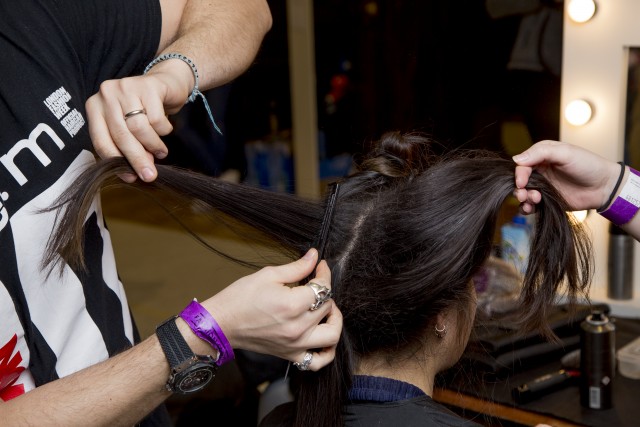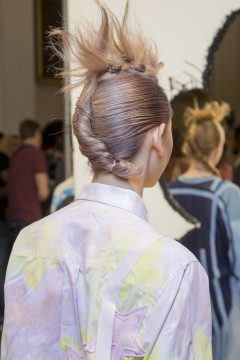 Backcomb the ends for texture and finish with label.m Hairspray, blow drying upwards for extra texture.