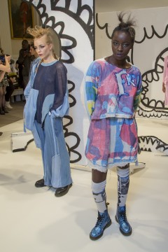 comic book mixed with military influences. Pastels mixed with bright hand painted fabrics.
