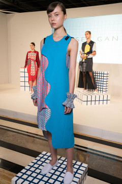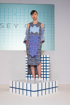 Gather hair into a low ponytail at the nape of the neck using label.m Hairpsray to smooth down and secure with elastic