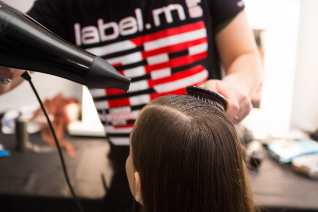 Blow dry straight using a label.m Grooming Brush and Tourmaline Dryer