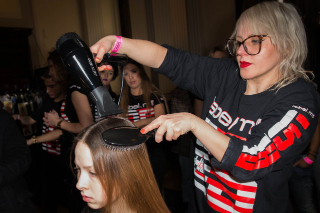 Create a centre parting, apply label.m Volume Mousse onto the roots blow dry flat to head