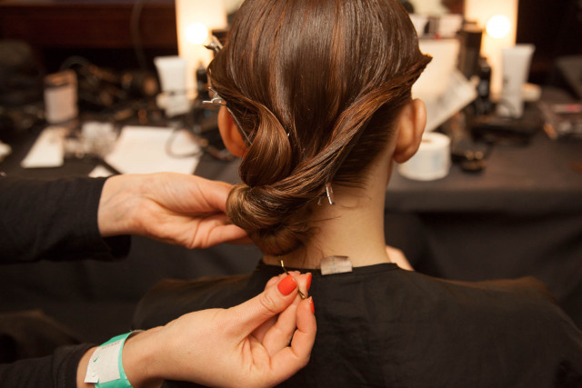 Remove the label.m Metal Sectioning Clips and fix bun in place with label.m Hold and Gloss Spray