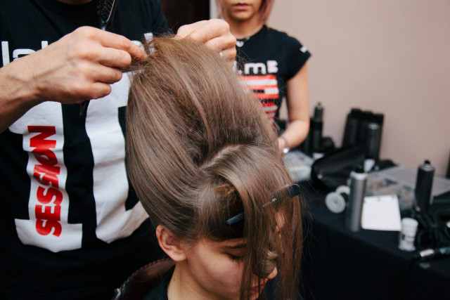 Section hair from the top of the ears and backcomb the underneath portion from the roots to the ends