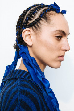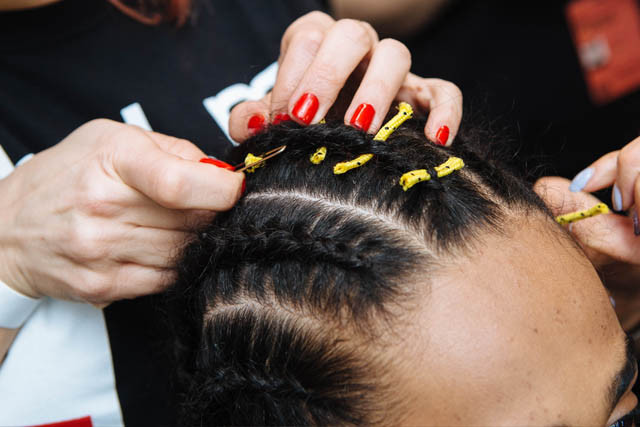 Join us backstage and front-row at London Fashion Week for the Queen Elizabeth II Award Winner, Bethany Williams AW19, where Head of Team Efi Davies created individual braided looks for each model weaving used recycled materials into the hair.