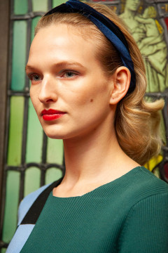 In contrast to the dry texture of the waves – liberally spritz the top only with label.m Hold & Gloss for a distinct high shine appearance. Set with Hairspray.