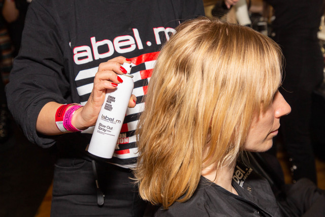 Prep hair with label.m Blow Out Spray and blow dry straight.