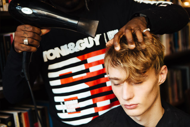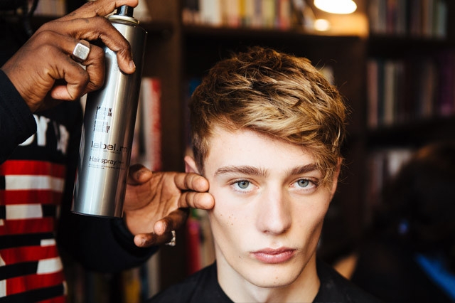 Prep with label.m Volume Mousse to the top section and label.m Sea Salt Spray to the lower section of the head.