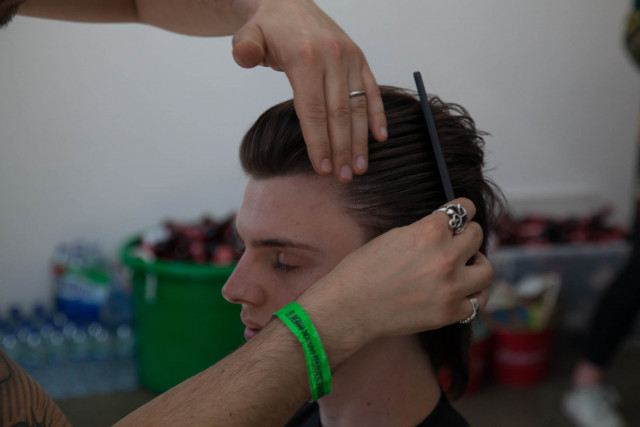 Taking its cue from the old-school sportswear influence, the hair remained minimal but gave off the appearance of being sweaty, resembling a gentleman in the gym. Daniele and the session team, worked with the models’ natural curls and length to create a diverse range of looks.