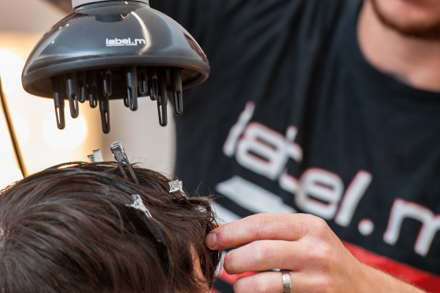 Pinch the front of the hair with label.m Setting Clips to create texture and set with a label.m Diffuser on a medium speed and temperature