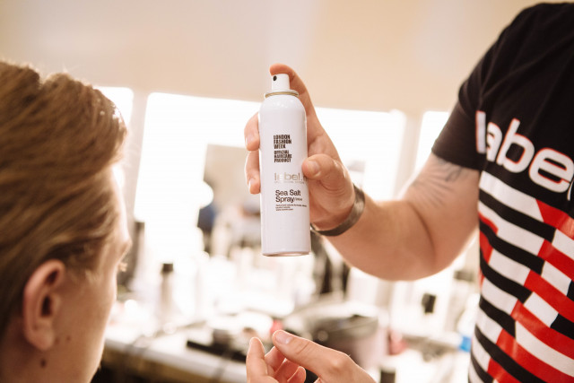 Mist hair with label.m Sea Salt Spray to add a gritty texture, then once you’re happy with the shape, set with label.m Hairspray to hold in place