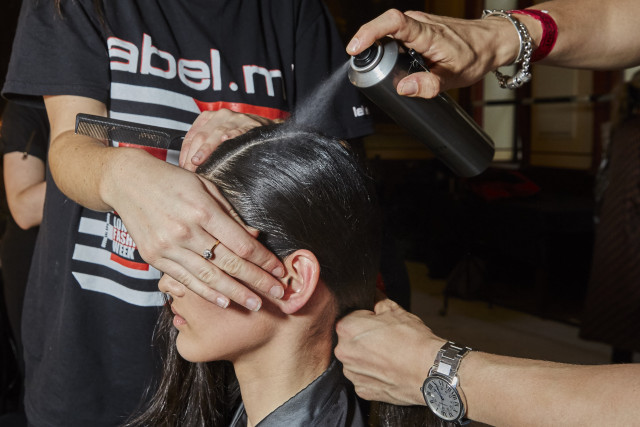 Apply label.m Fashion Edition Wax Spray to front section to give it a high shine, wet look effect