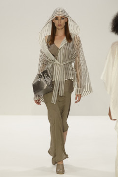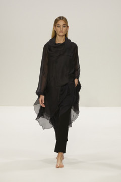 Loose silhouettes are draped in multi layers of neutral tones portraying the vast and empty landscapes that inspired the designs