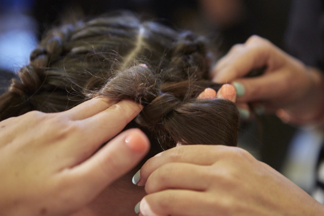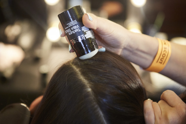 Apply label.m Volume Mousse before taking an off centre parting. To keep the parting clean and help braiding easier, apply label.m Texture Wax Stick