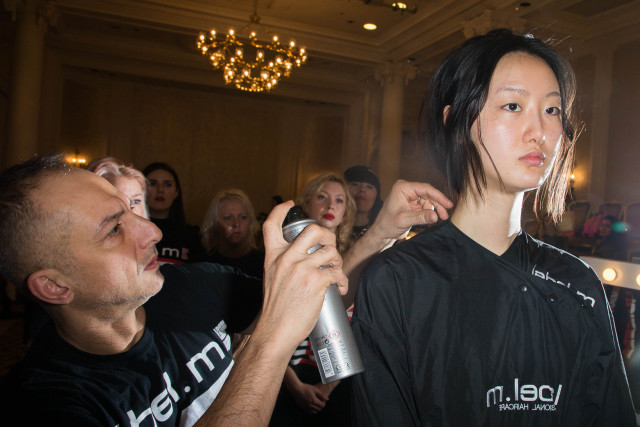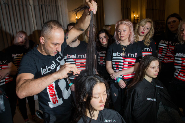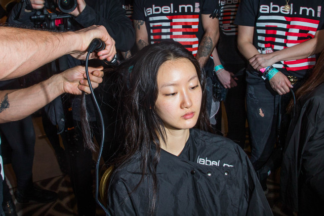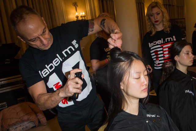 Apply the NEW label.m Diamond Dust Leave-In Conditioner to dry hair