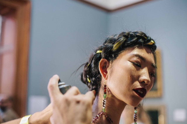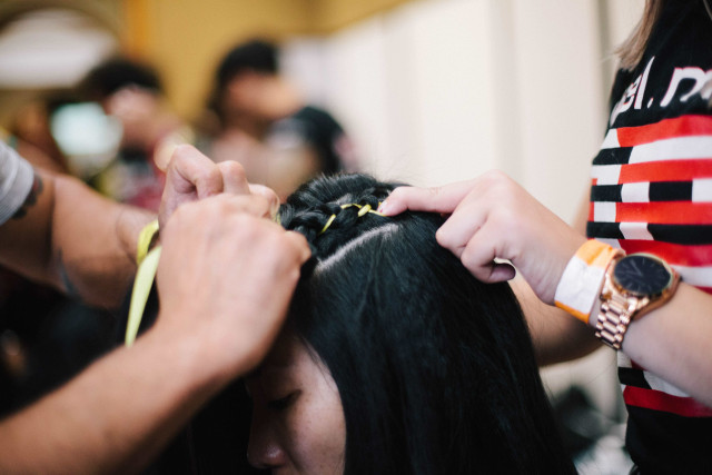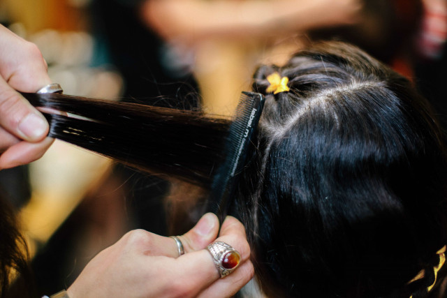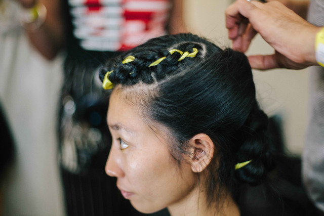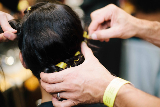 For a softer look, gently pull out the hairs around the hairline. Finish with label.m Hairspray