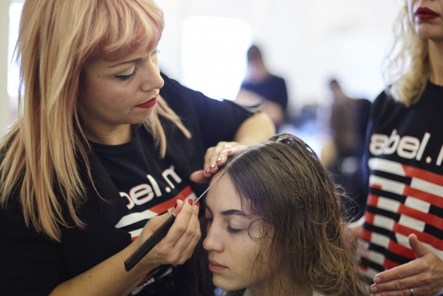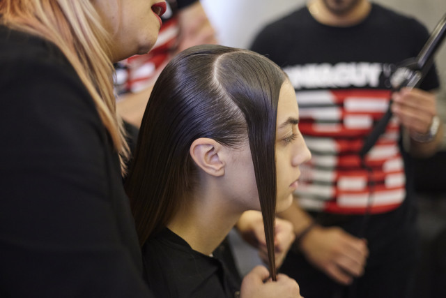 Following on from Xiao’s collection theme, Efi and the Session Team have created YOU ARE A FASHION ROBOT hair, which is structured with sharp, defined partings on all the models.