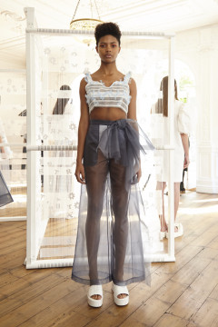 Xiao Li has developed her collection around the idea of wanting to feel ‘more invisible’. Throughout the colourful collection the phrase ‘I AM NOT A ROBOT’ is present, referring to the state of the fashion industry.