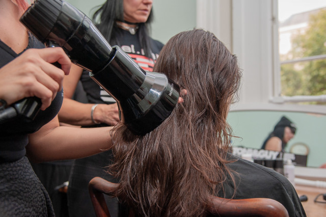 Section the hair horizontally and prep each layer with label.m Sea Salt Spray