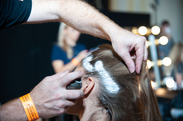 Apply label.m Volume Mousse to the hairline and surface and blast away from the face
