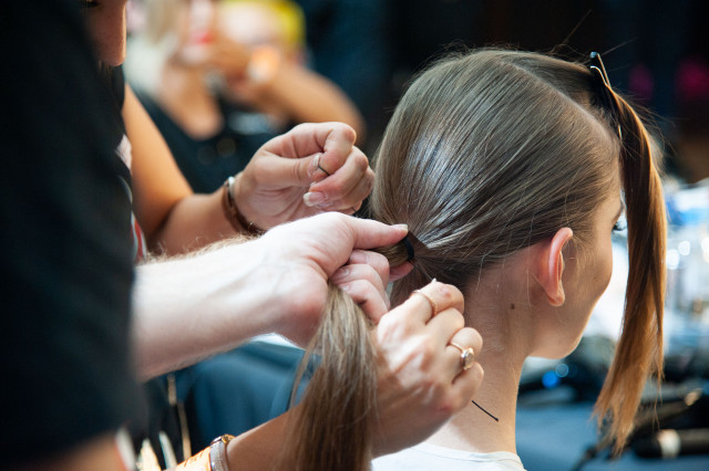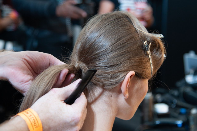 Set with label.m Hairspray and loop curl around the base of the ponytail