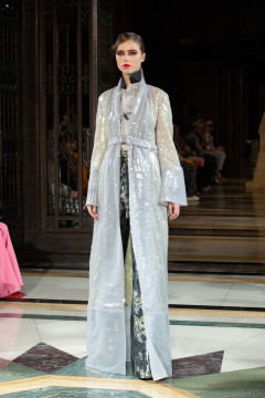 Contrasting opulence and power with a strong ponytail and glamourous finger wave