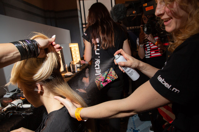 Apply label.m Fashion Edition Wax Spray to the root area and create finger waves to the face