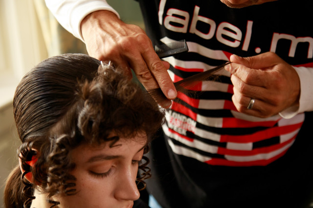 Lightly brush out using a label.m Large Cutting Comb and then use your fingers to backcomb the curls tight to the scalp