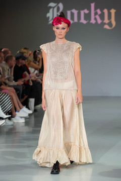 Rocky Star’s SS20 collection chronicles tales of a summer day sunset in the glorious Mughal gardens of India. The collection features paisley prints – a motif reminiscent of the 18th century Mughal textures and iridescent sequins lend to the clothes in gold and silver.